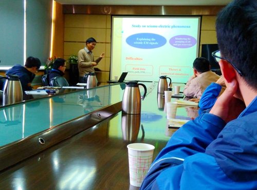 报告结束后,与会人员就同震电磁数值模拟、野外电磁观测等问题进行了深入讨论。